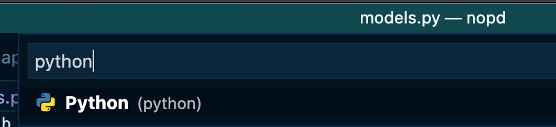 화면에 검색창이 나오면 Language Specific 이라고 치고 자동 완성되 목록에서 (아마도) 첫번째 항목인 "Configure Language Specific Settings..." 를 선택해 줍니다. 곧바로 사용중인 언어를 선택하는 창이 나옵니다. python 을 입력하여 python 으로 언어를 선택하겠습니다. 그러면 settings.json 파일이 로드되는 것을 확인할 수 있습니다.