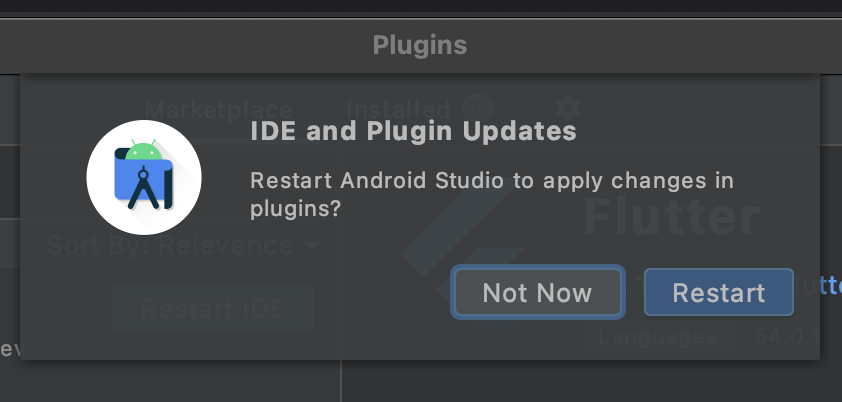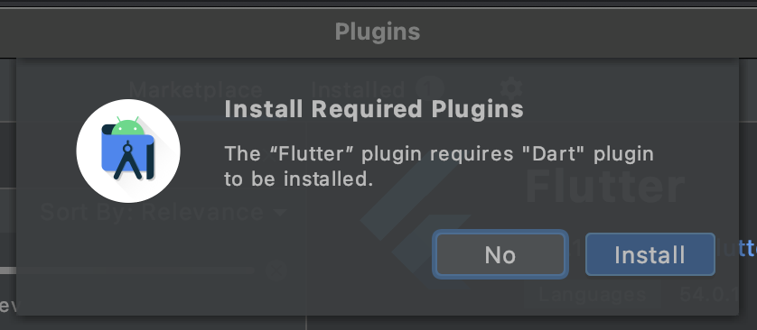 플러터를 구성하는 필수 요소인 다트 Dart 언어용 플러그인도 따로 존재하나 봅니다. Required 이니 Install 을 눌러서 Dart 플러그인도 설치하도록 하겠습니다.