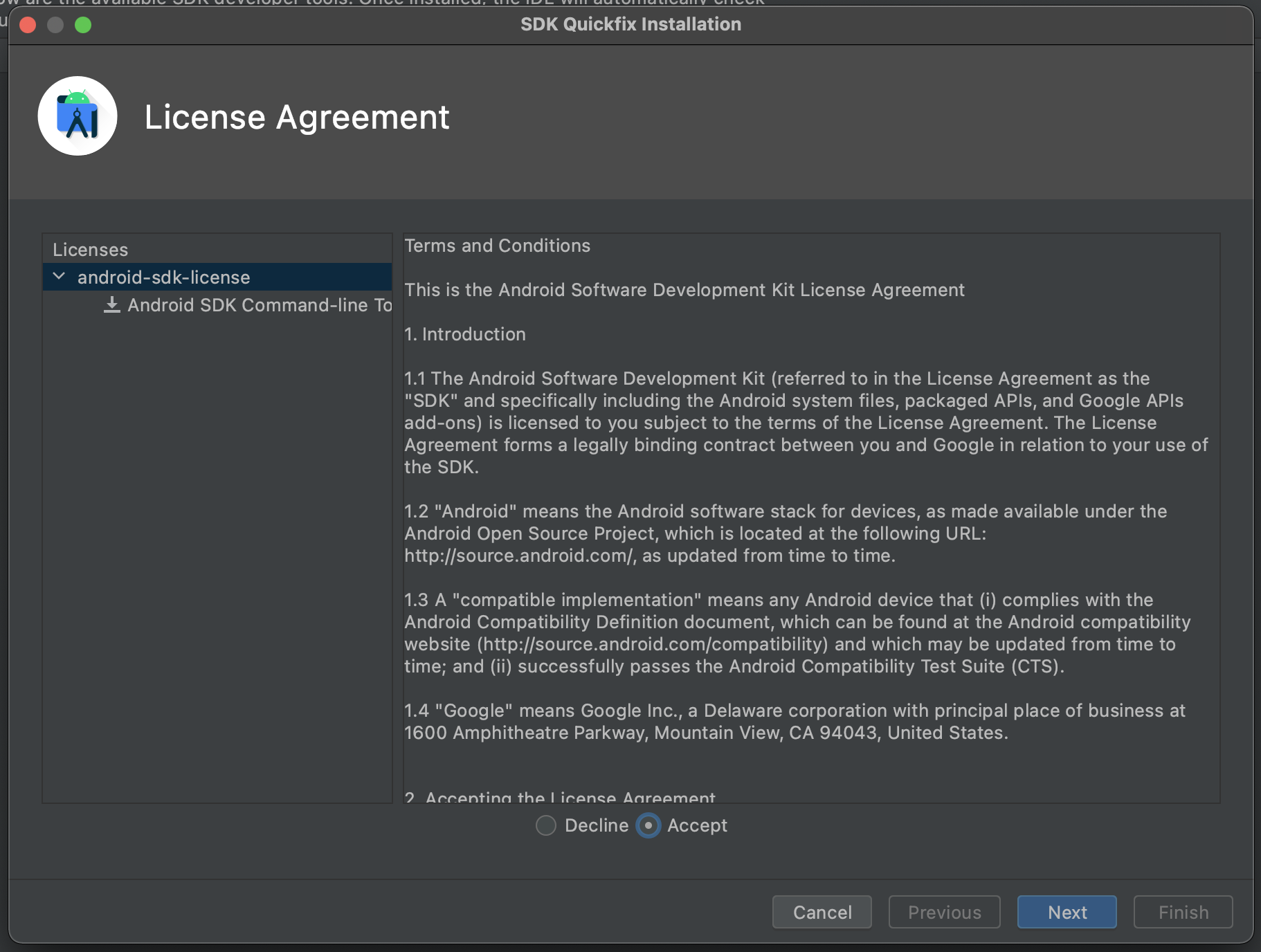 안드로이드 라이센스 동의 작업 다시 해보기