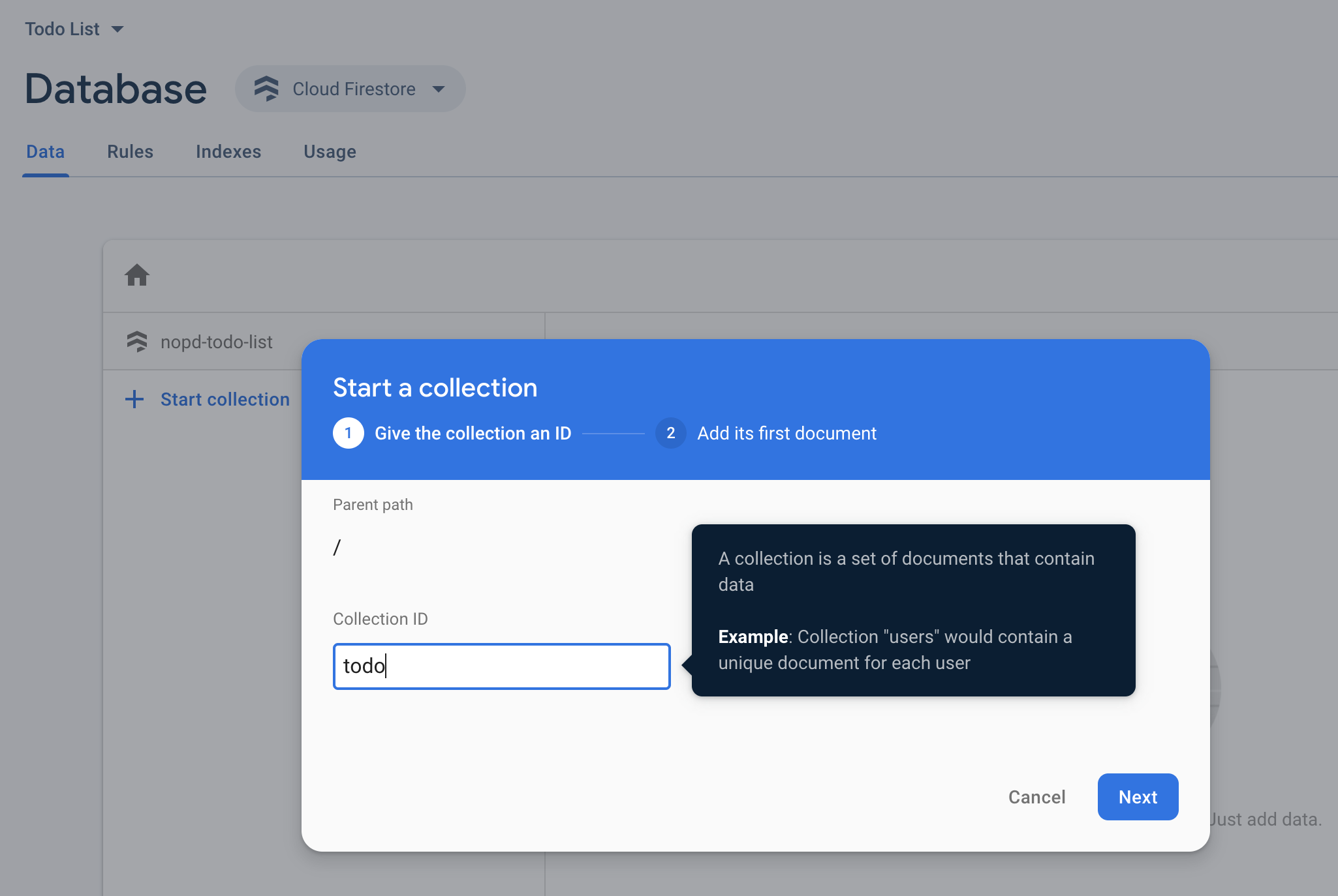 - Firebase / Cloud Firestore 에 새로운 Database 생성