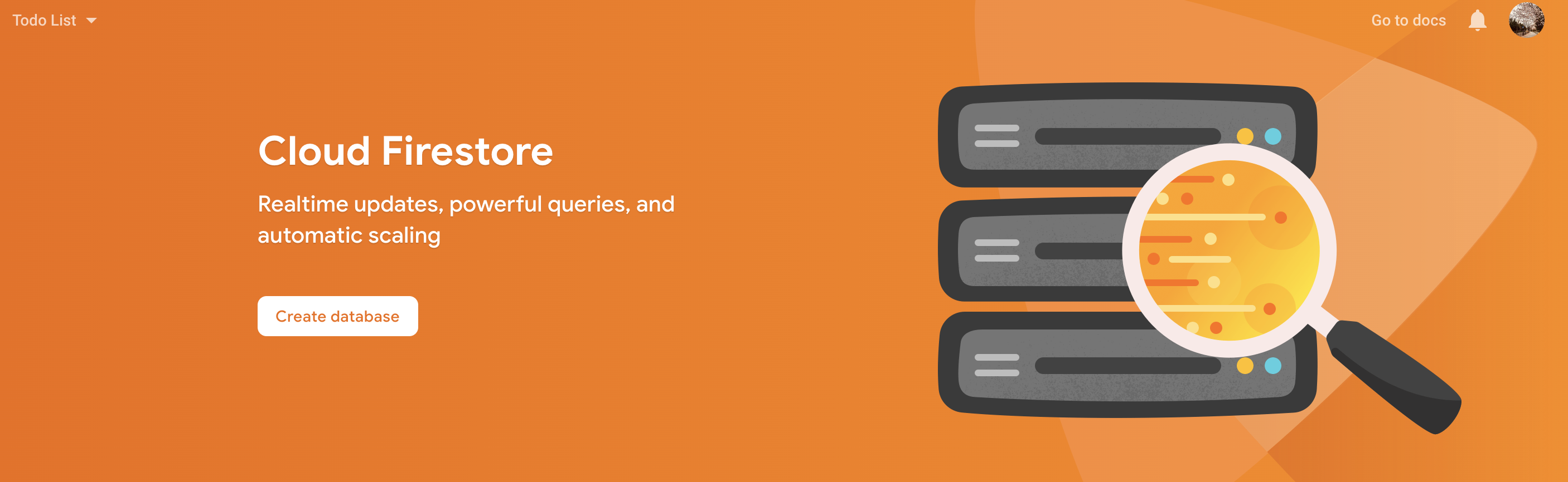 이제 Firebase 사용을 위한 기본적인 준비가 끝났습니다. 이 포스팅에서는 Firebase 가 제공하는 Cloud Firestore 를 쓰기 위해 해주어야 하는 작업을 이야기하고 있기 때문에 Firestore 에 Database 를 생성하는 과정도 살펴보도록 하겠습니다. 앱의 기본적인 설정이 끝났다면 아래와 같은 화면에 도착했을겁니다. 우측의 오렌지색 <Cloud Firestore> 이미지를 눌러 DB 생성을 해보겠습니다.