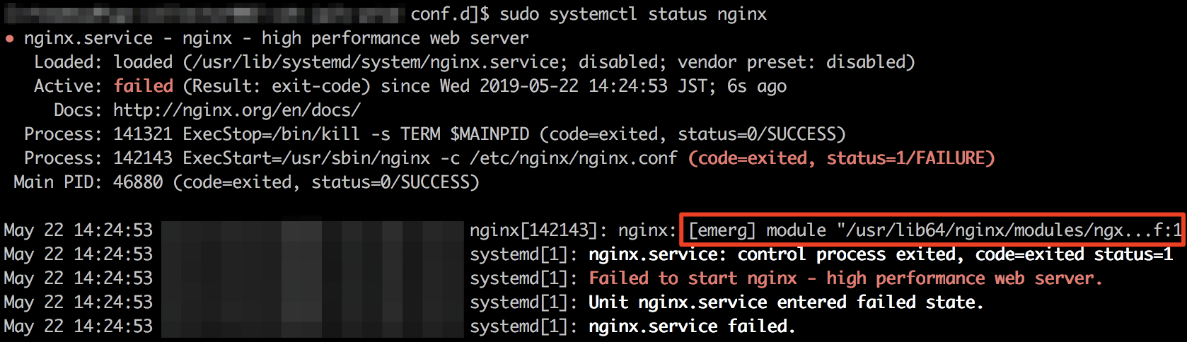 [emerg] module "/usr/lib64/nginx/modules/ngx_http_geoip_module.so" version 1012002 instead of 1016000 in /usr/share/nginx/modules/mod-http-geoip.conf:1