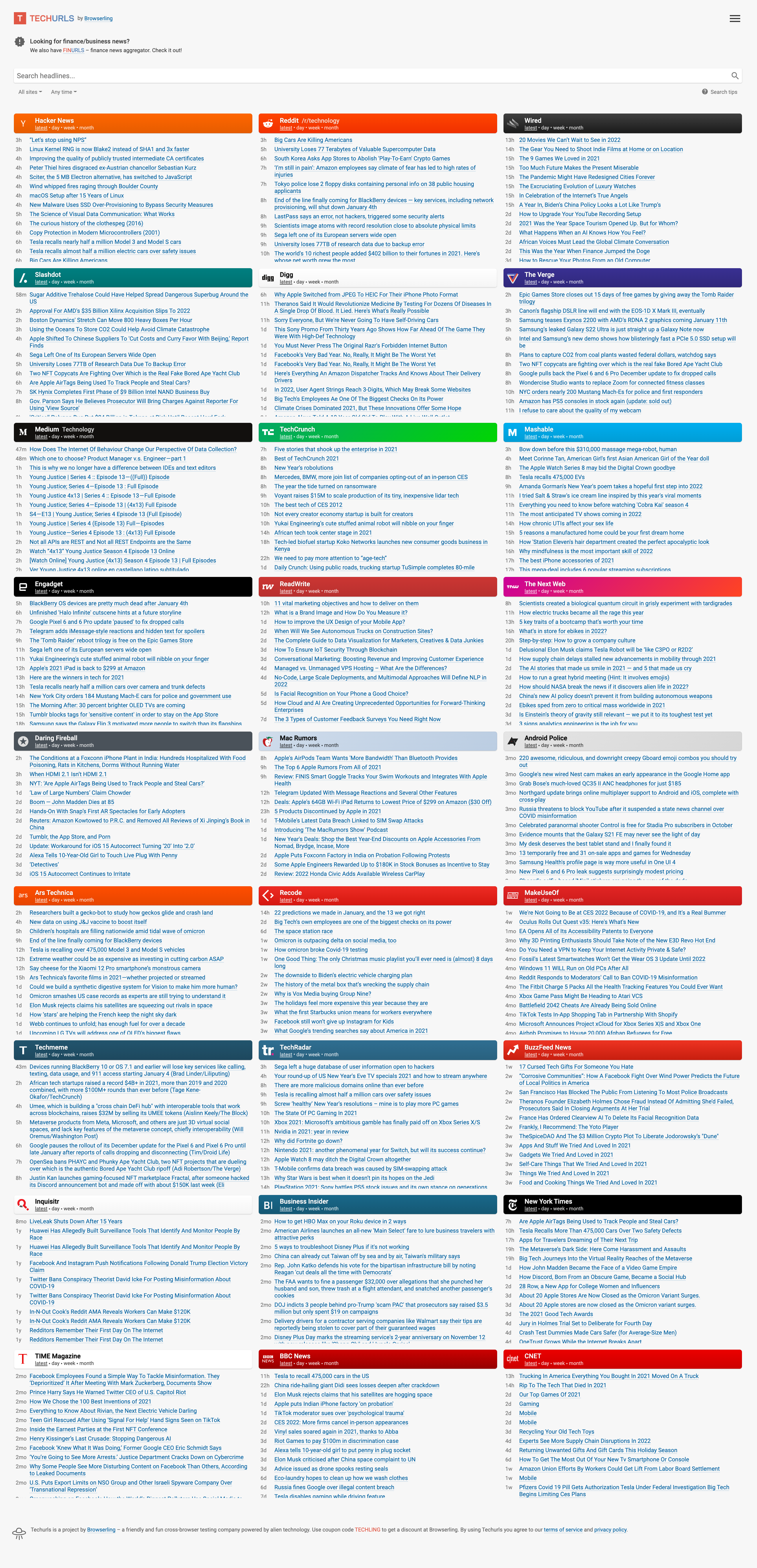 The VErge, TechCrunch, NY Times의 기술 섹션까지