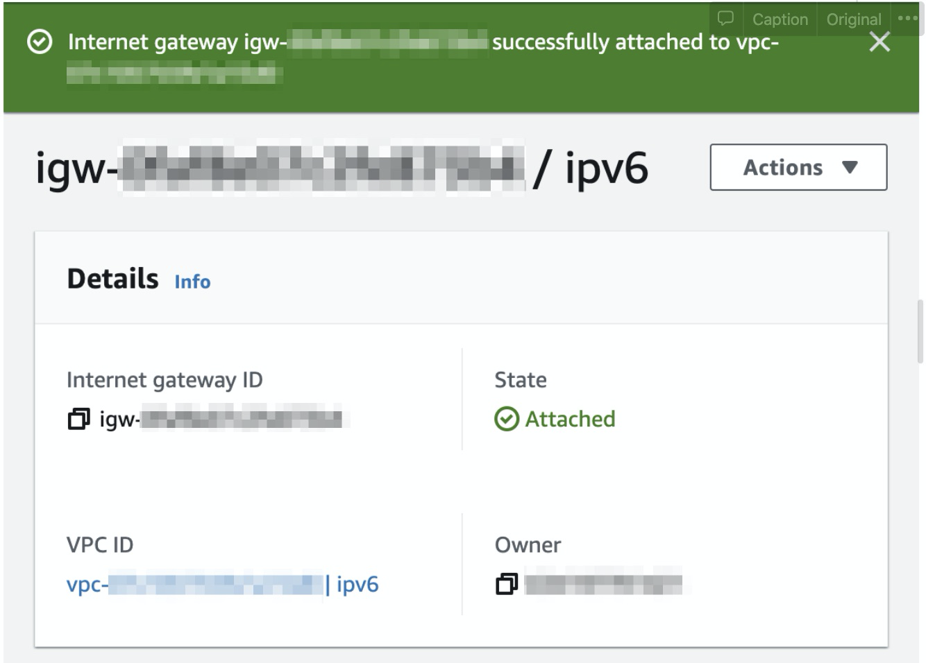 생성된 Egress Only Internet Gateway 는 eigw 로 시작되는 고유 ID 를 갖게 됩니다. Internet Gateway 의 생성 화면과 달리 생성 할때 이미 VPC 를 지정했기 때문에 별로도 Attach 하는 과정이 나오지는 않습니다. 비슷한 제품인데 담당 조직이 다른지 생성 화면과 절차가 차이가 있네요? Egress Only Internet Gateway 가 훨씬 편한 것 같습니다 ^^