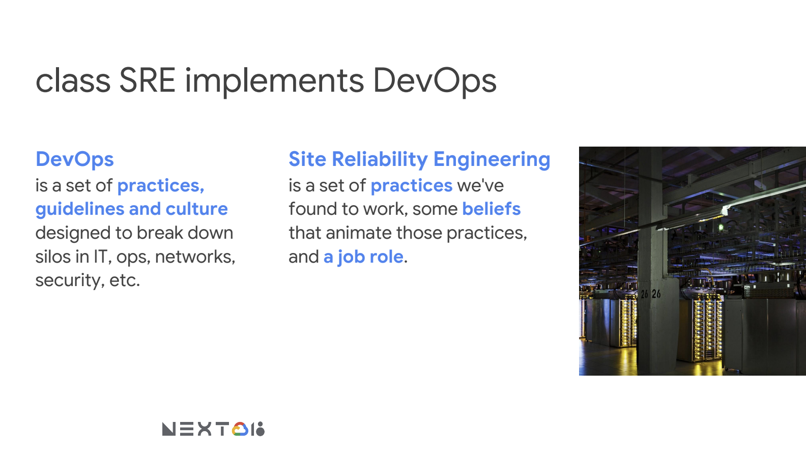 Site Reliability Engineering = Practices, Beliefs for Practices, Job role