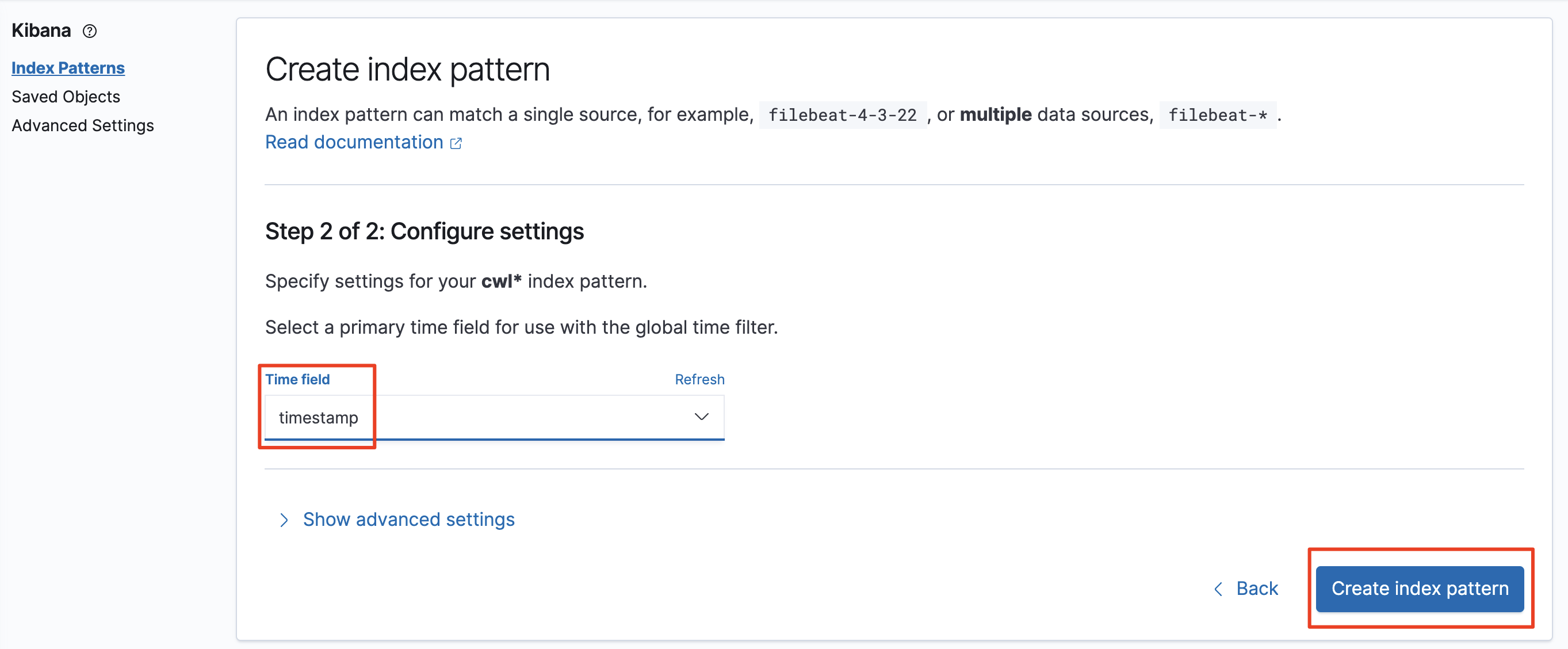 Subscription filters 설정의 두번째 섹션인 `Configure log format and filters`에서는 로그 포맷을 정의하게 됩니다. 정의된 로그 포맷으로 규격을 맞추어 CloudWatch Logs에서 Lambda를 거쳐 ES로 로그가 전달되는 식입니다. 포맷을 별도로 정의하지 않으면 ES에서는 `@message` 컬럼으로만 로그 데이터가 저장됩니다. 따라서 저장된 로그를 조회하거나 다루기 쉽게 하려면 로그 포맷을 지정하는 것이 중요합니다.