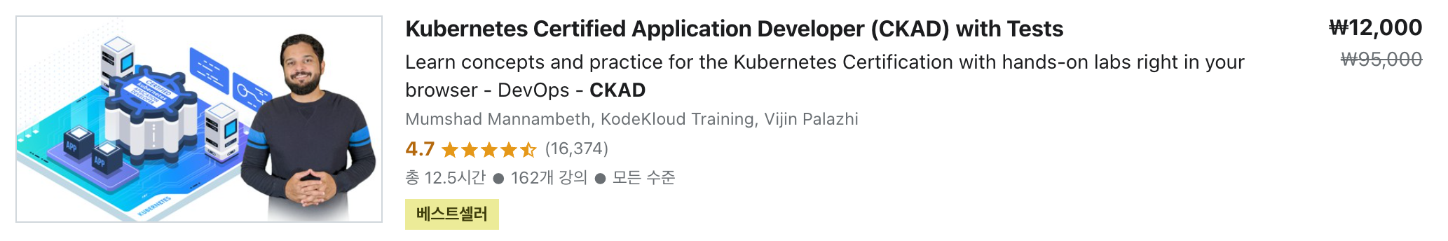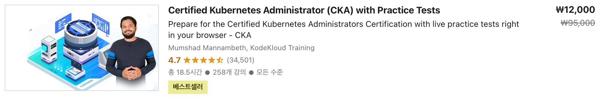 2만원 정도로 할인 판매할 때 샀던 강의인데 역시 연초라 12,000원에 Unlimited 강의 수강이 열려 있습니다. CKAD 와 마찬가지로 Kode Kloud 강의가 같이 제공됩니다.